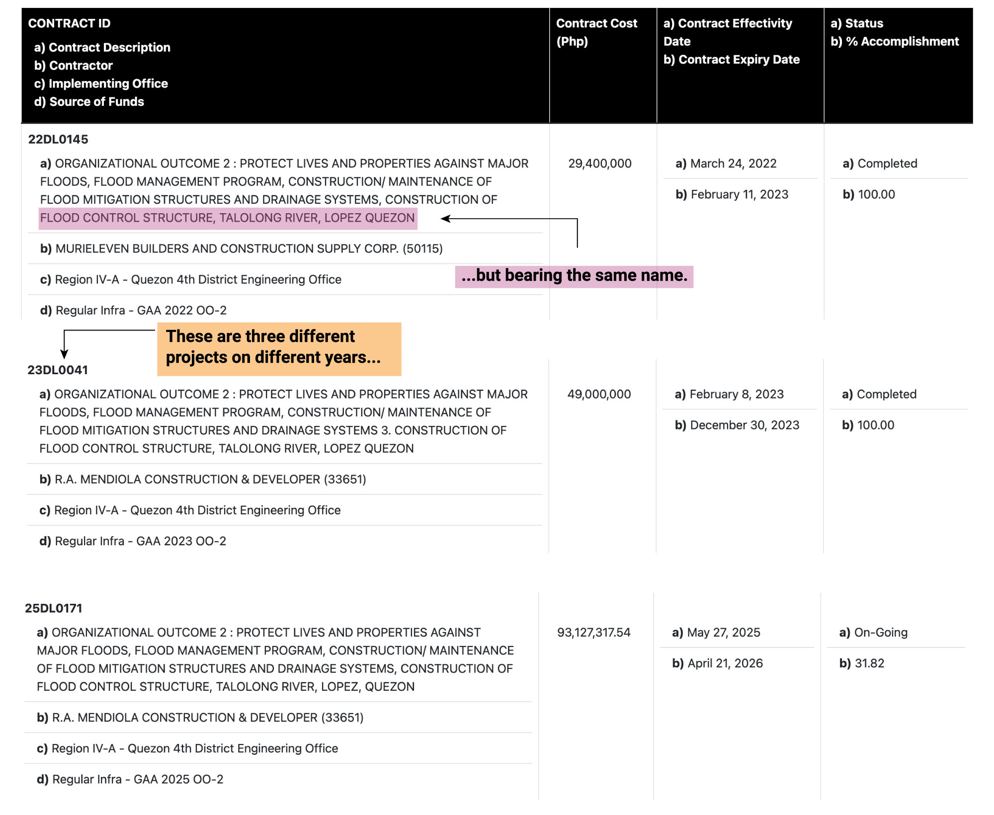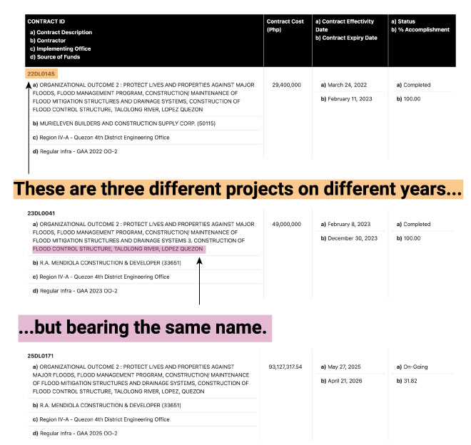 started” in DIME, but “ongoing” with the DPWH. We think this is okay